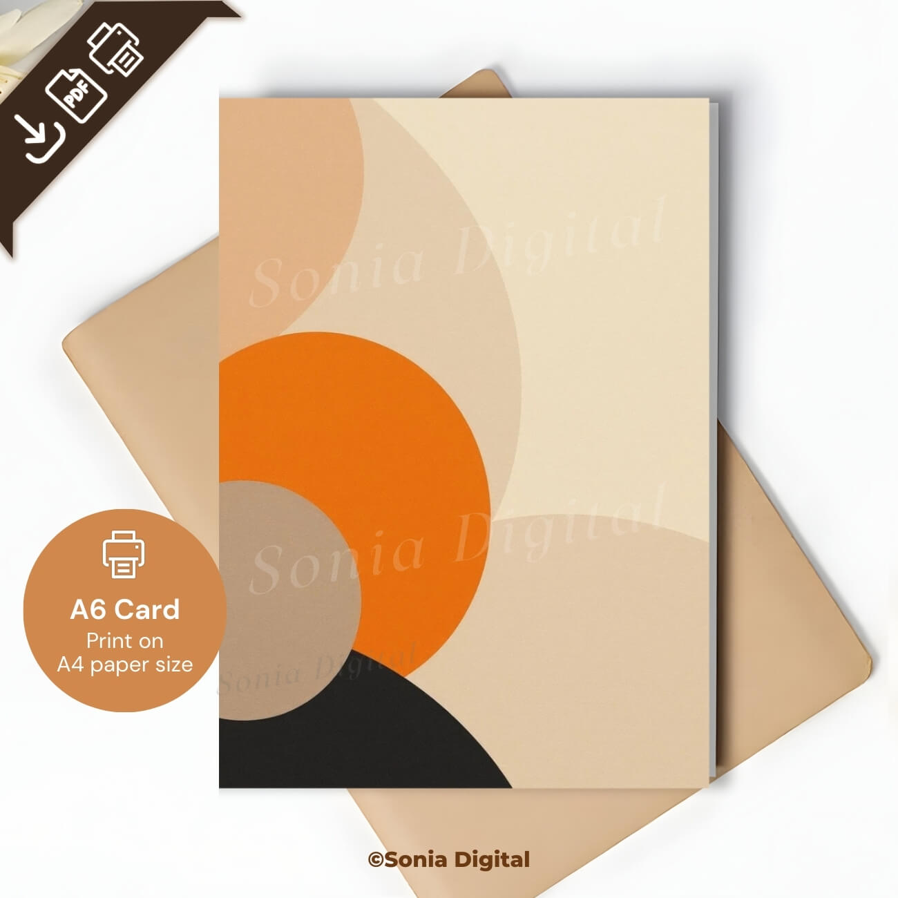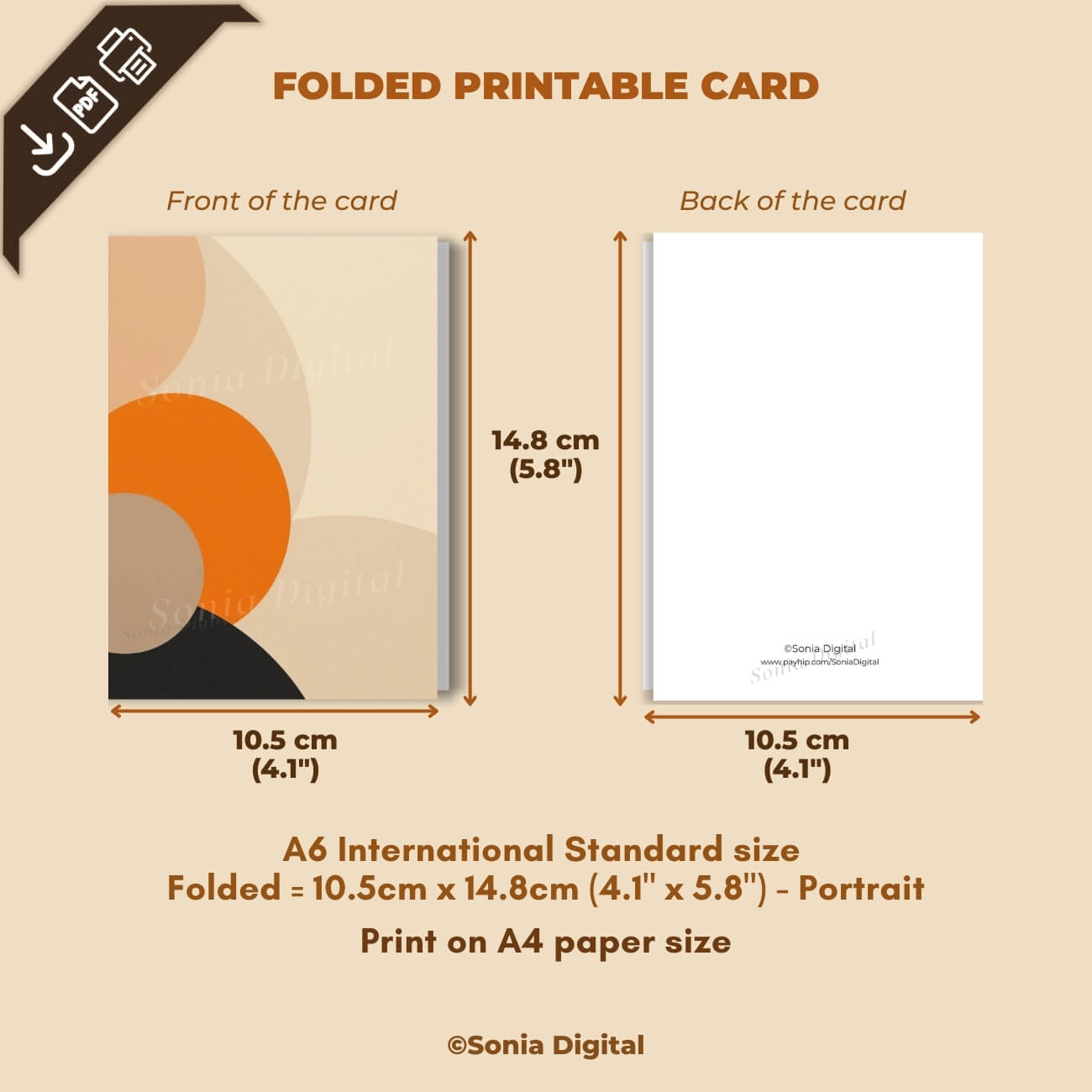 1 Printable Card featuring abstract forms (no text), A6 International Standard size - when Folded is 10.5 cm x 14.8 cm/ 4.1" x 5.8"). Available in:
