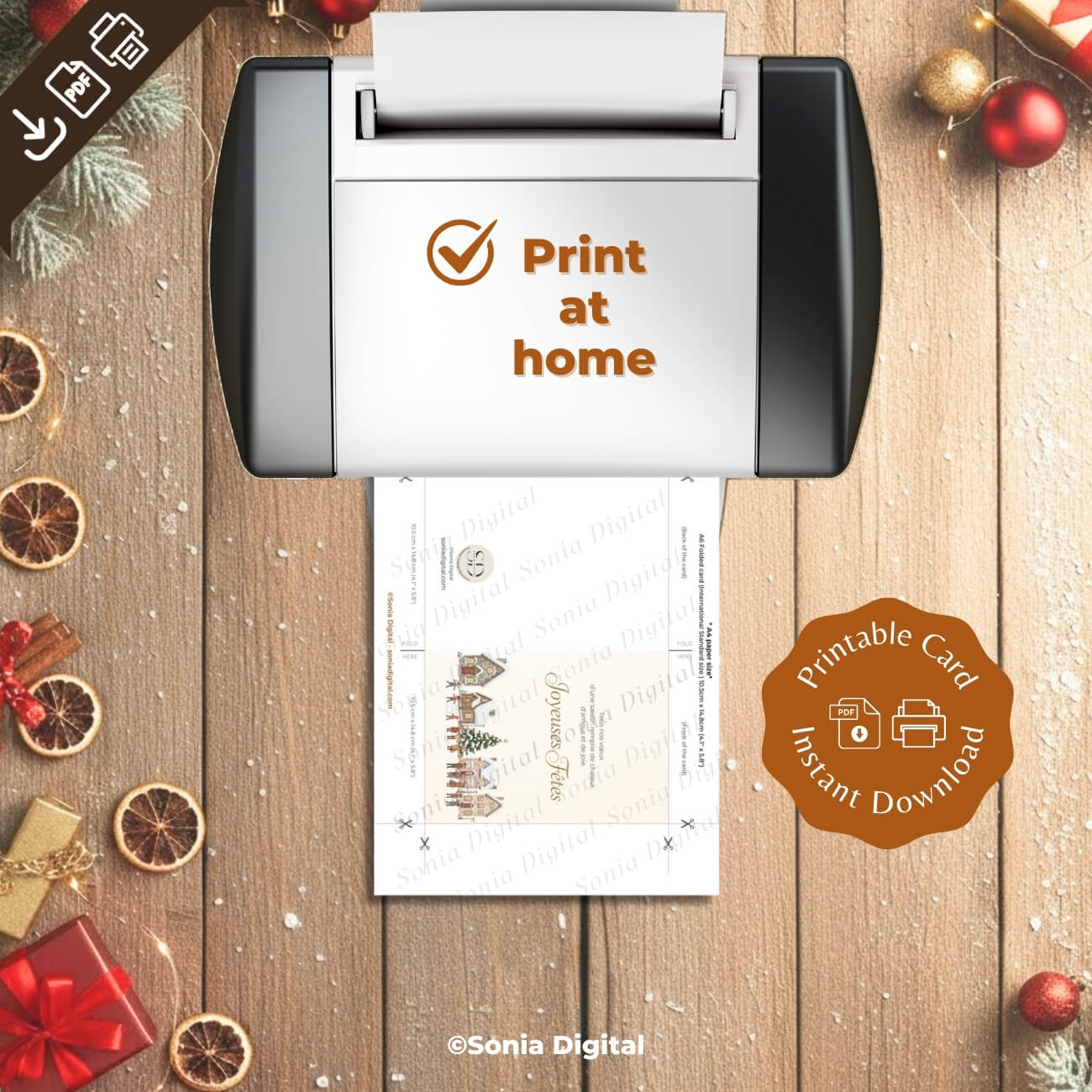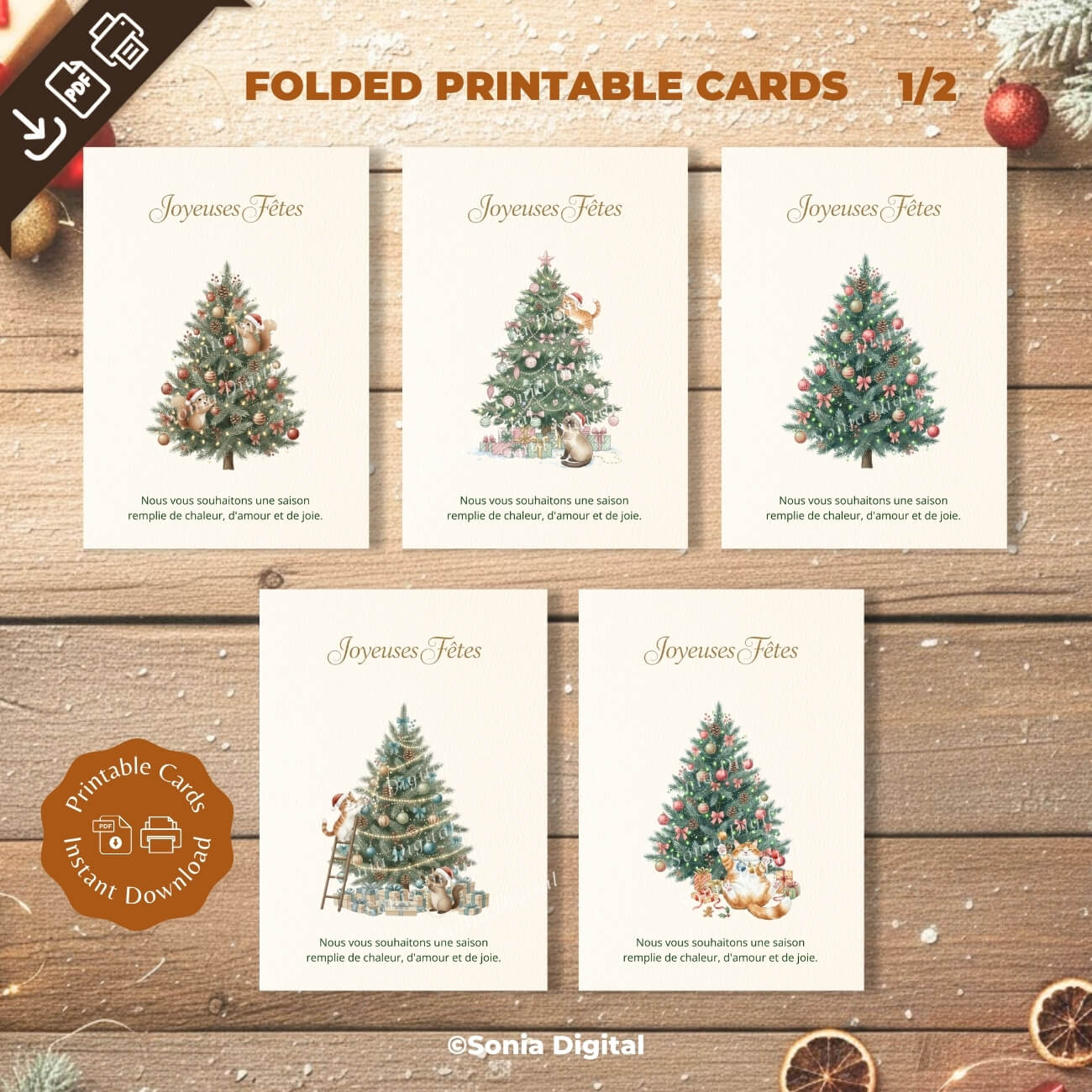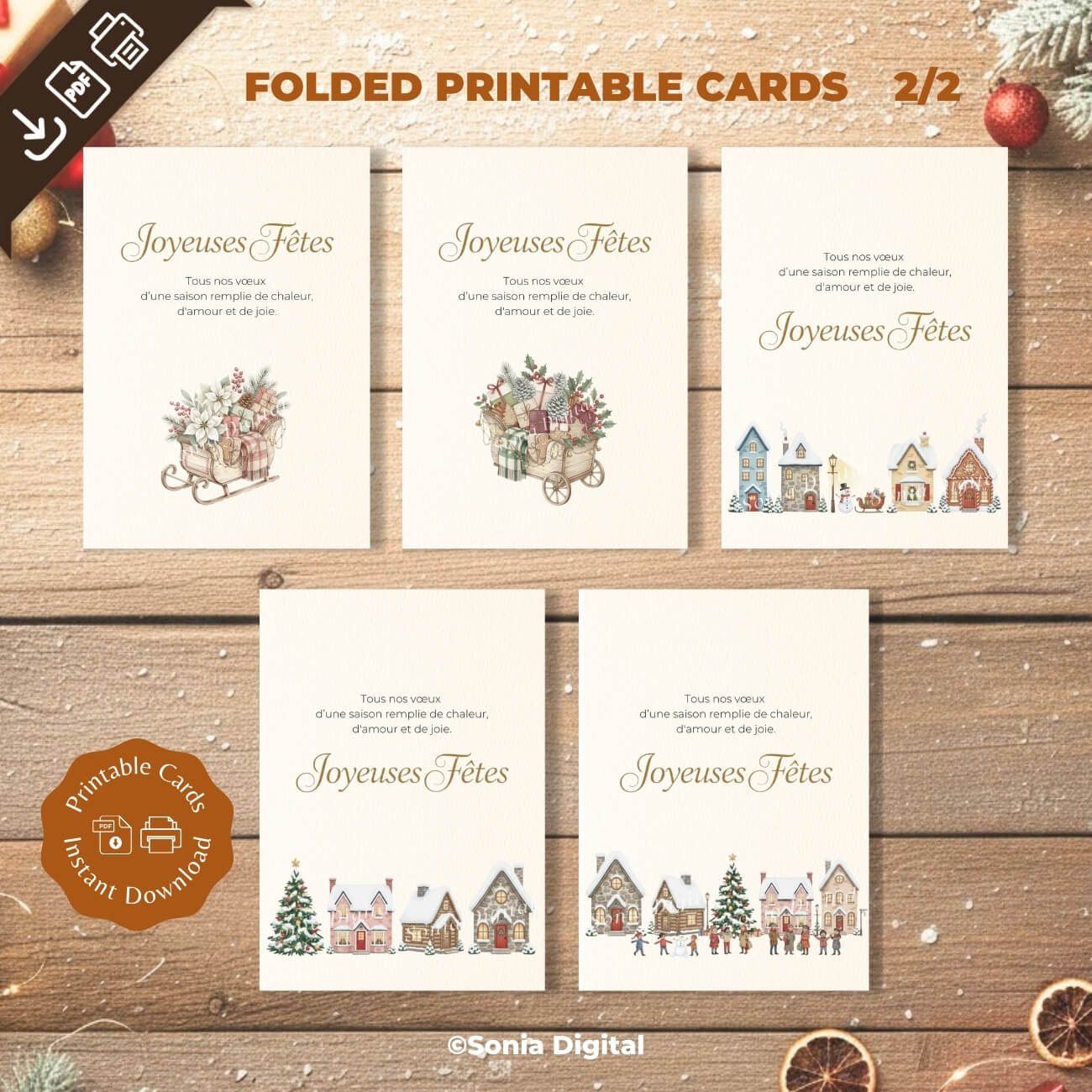 10 Printable Holiday Greeting Cards “Joyeuses Fêtes”, in A6 International Standard size - when folded are 10.5 cm x 14.8 cm/ 4.1" x 5.8"). Available in: