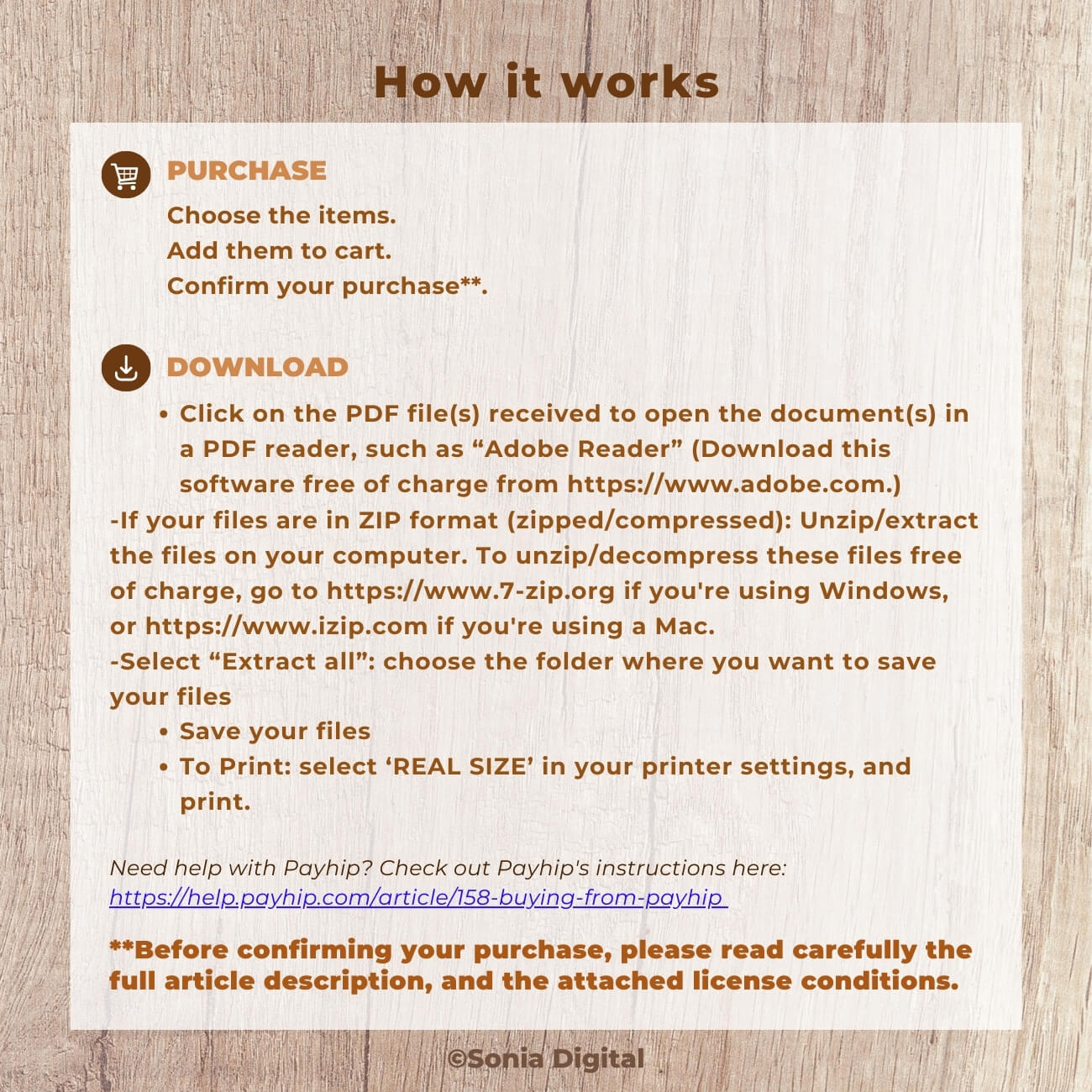 Need help with Payhip? Check out Payhip's instructions here: https://help.payhip.com/article/158-buying-from-payhip