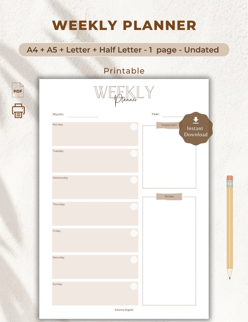 * Print use: Print out your planner at home and insert it in your diary or home binder.