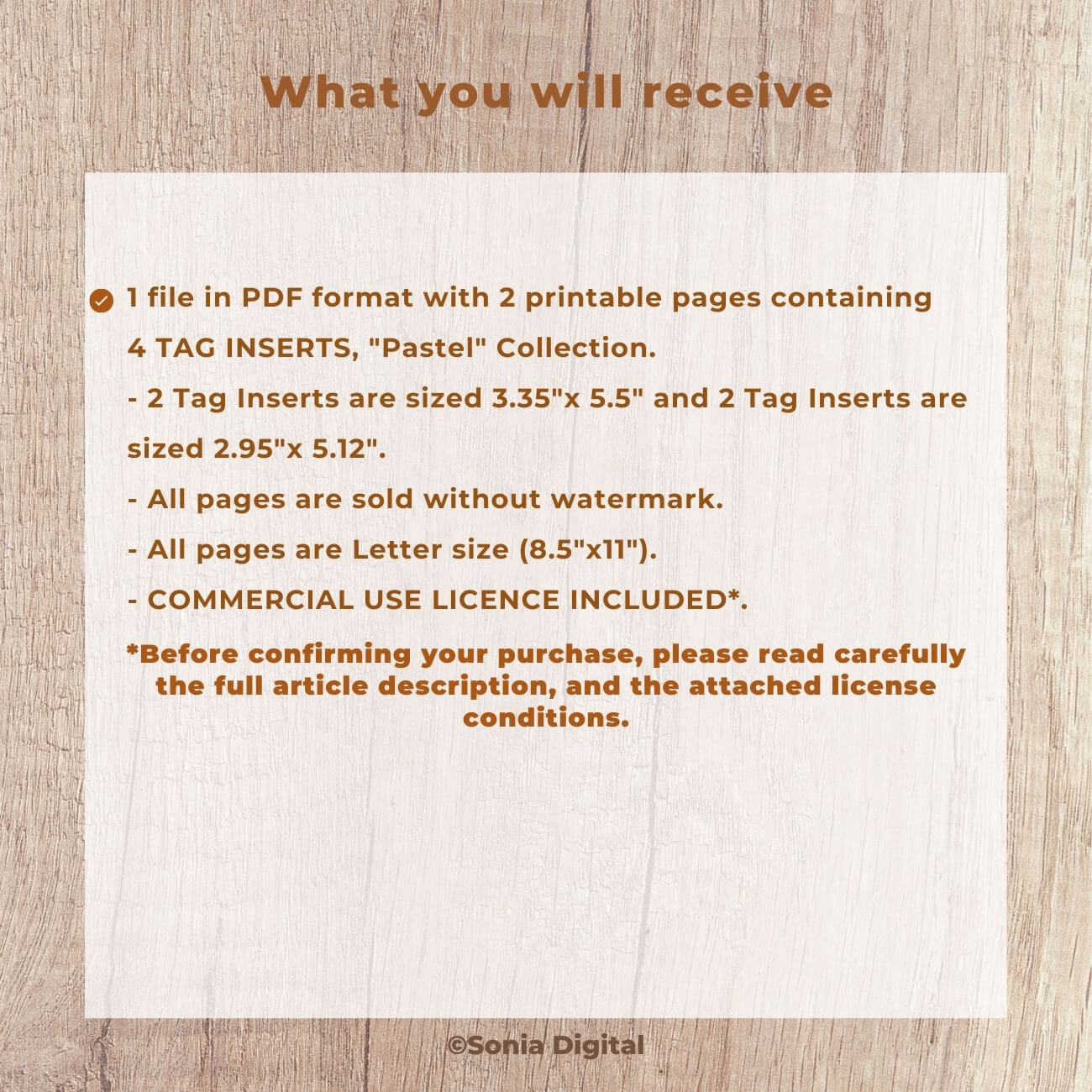🔸2 printable pages containing 4 Tag Inserts, "Pastel" Collection, in Letter size, in 8.5”x11”. 2 Tag Inserts are sized 3.35"x 5.5", and 2 Tag Inserts are sized 2.95"x 5.12". All pages are delivered without Watermark. Commercial use license included*.