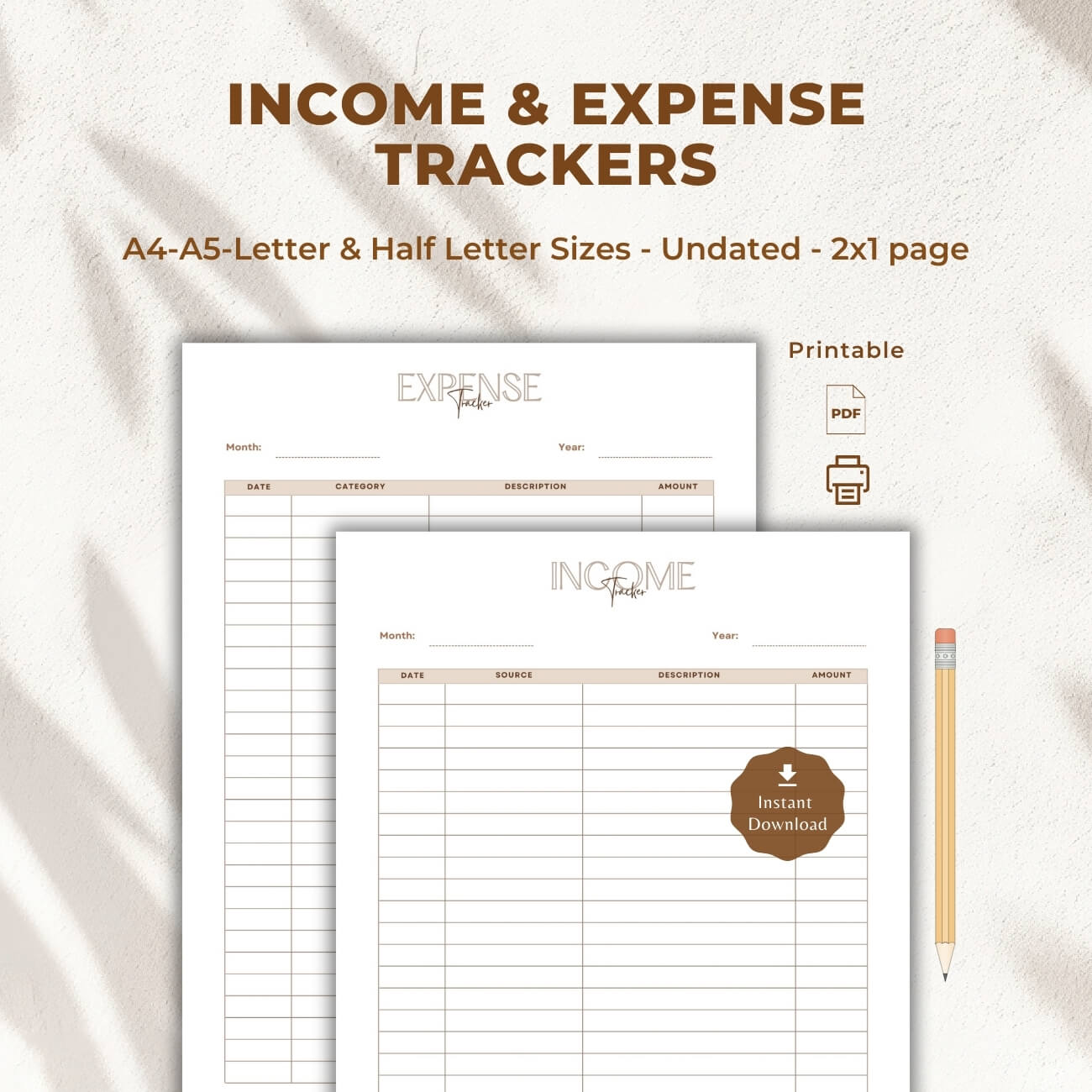 Income & Expense Trackers, A4-A5-Letter-Half Letter (printable, Undated)