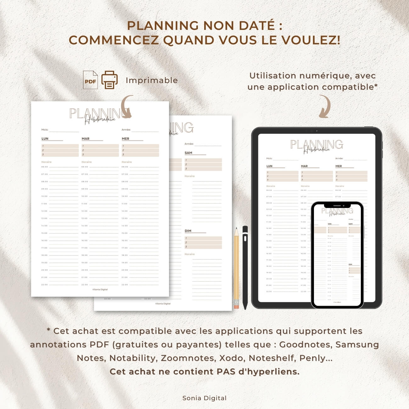 🔸1 Fichier PDF «Planning Hebdomadaire», A5