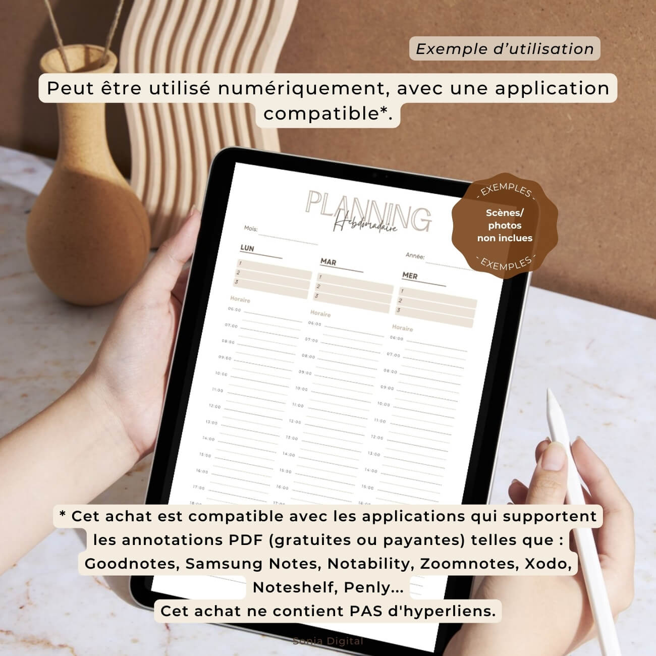 * Utilisation numérique : Compatible avec les applications de prise de notes et de planification qui prennent en charge les fichiers d'annotation PDF, telles que : Goodnotes, Samsung Notes, Notability, Zoomnotes, Xodo, Noteshelf, Penly, etc.