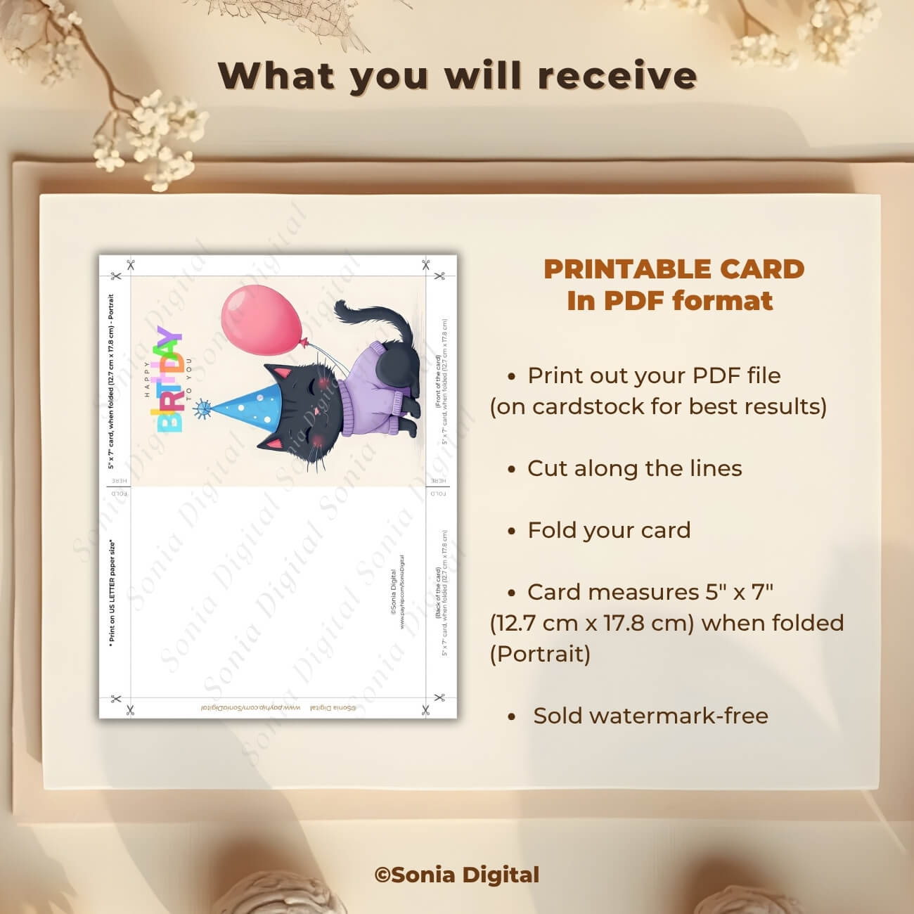 The card is in Portrait format when folded. The page is watermark-free. The PDF file is high-resolution (300 DPI). The PDF file is NOT editable. License is for PERSONAL USE only.