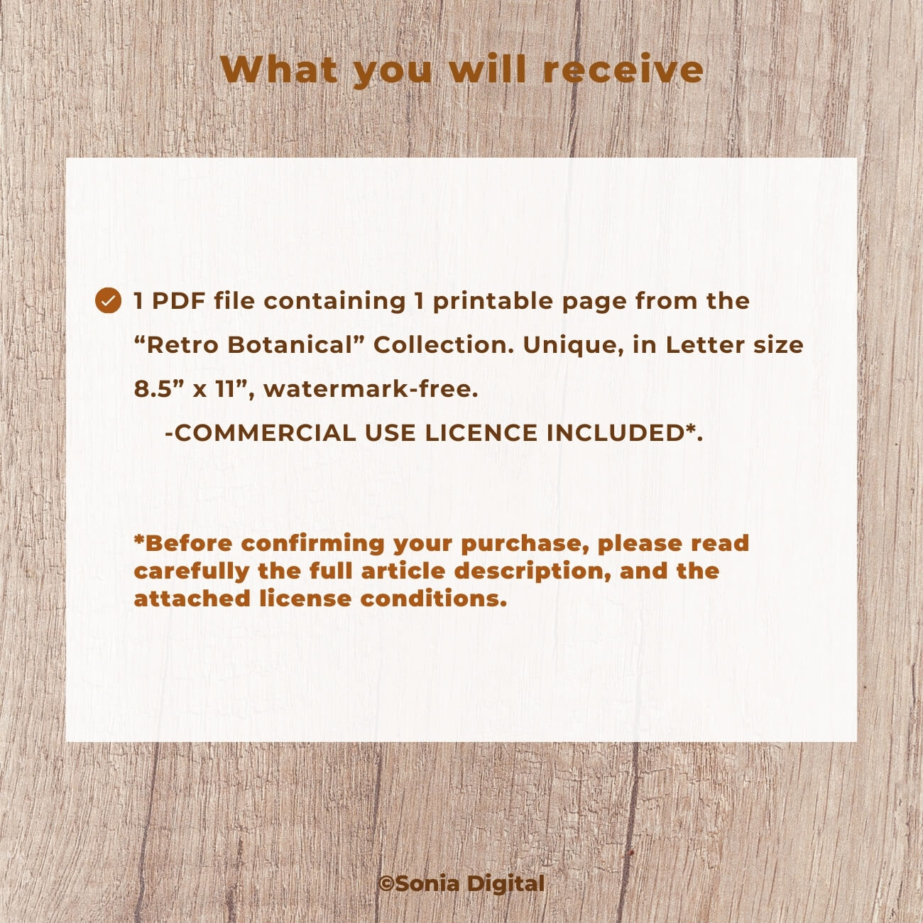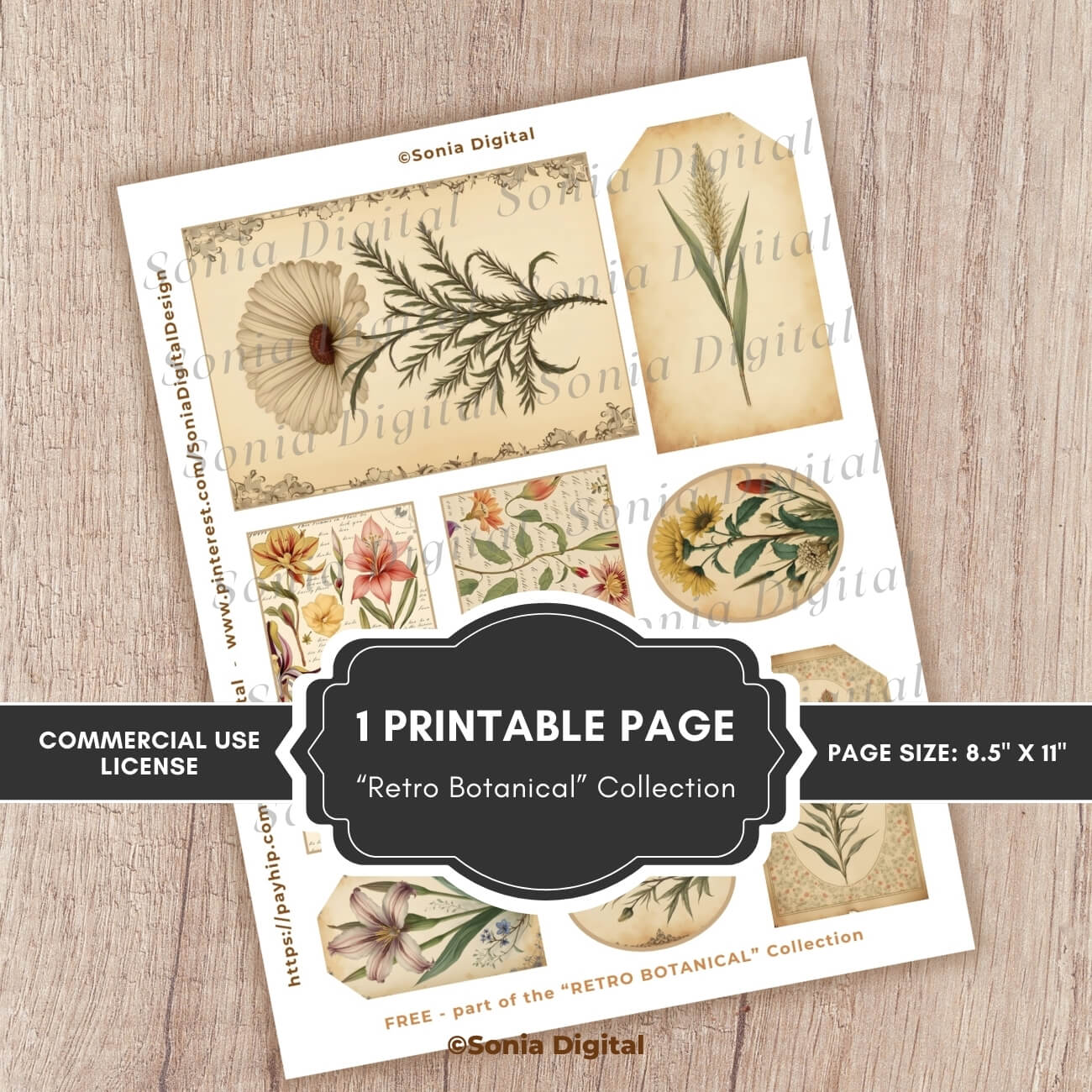 🔸1 printable page from the “Retro Botanical” Collection. Unique, in Letter size 8.5”x11”, sold watermark-free. Commercial use license included*.