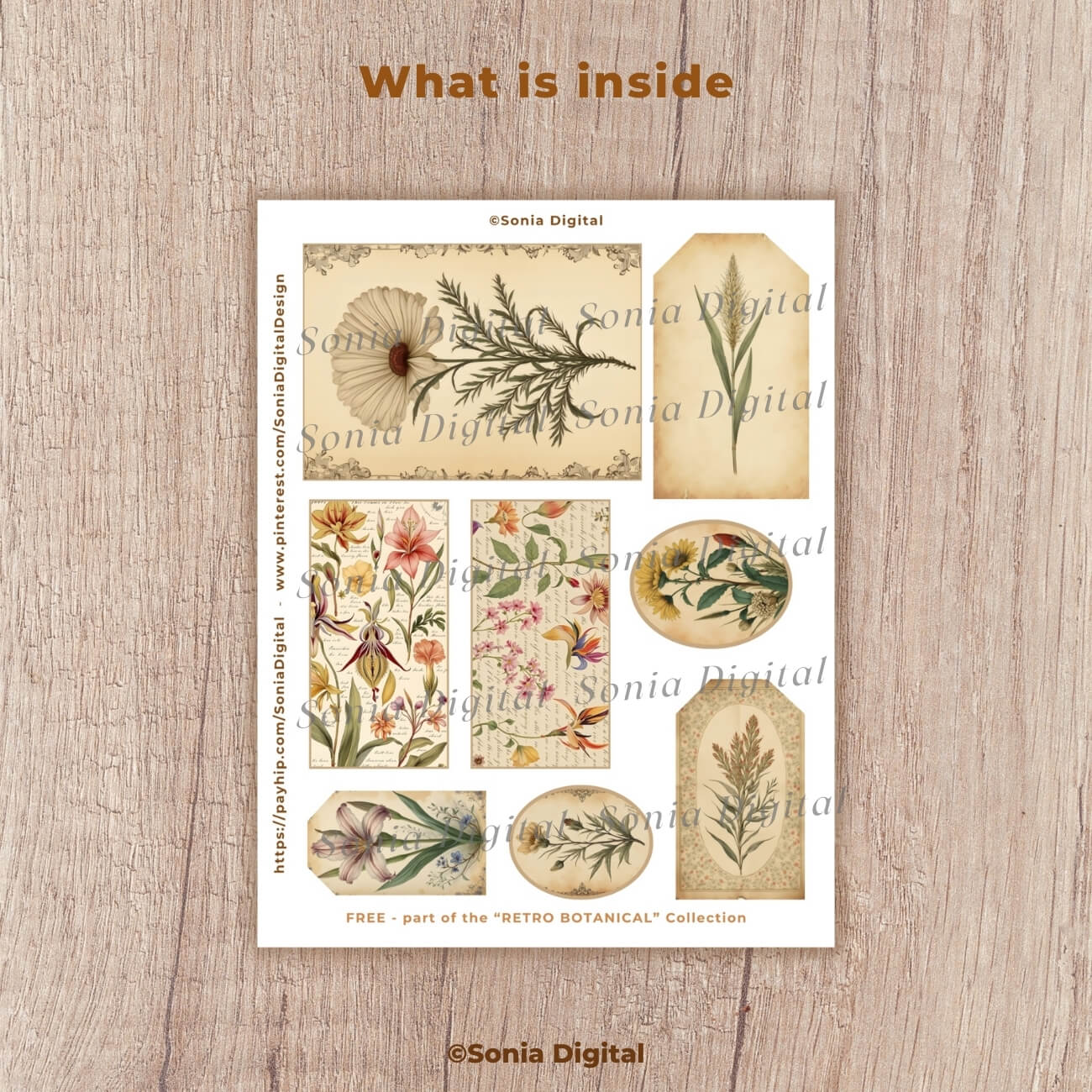 FREE - 1 printable page from the “Retro Botanical” Collection, for Scrapbooking and Junk Journal creations. Letter size (8.5”x11”). Commercial use license included*