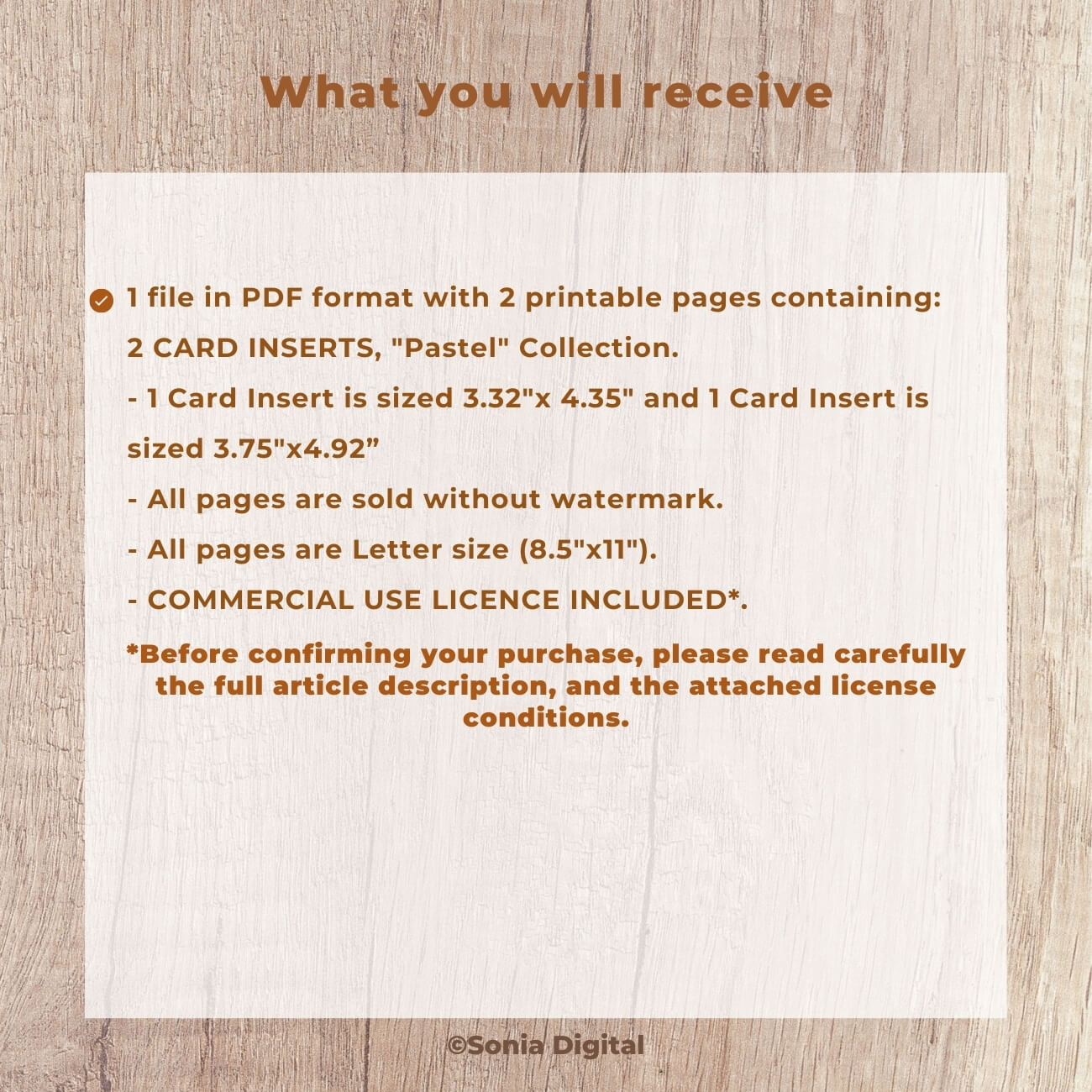 🔸2 printable pages with 2 Card Inserts, "Pastel" Collection, in Letter size, in 8.5”x11”. 1 Card Insert is sized 3.32"x 4.35" and 1 Card Insert is sized 3.75"x4.92”. All pages are delivered without Watermark. Commercial use license included*.