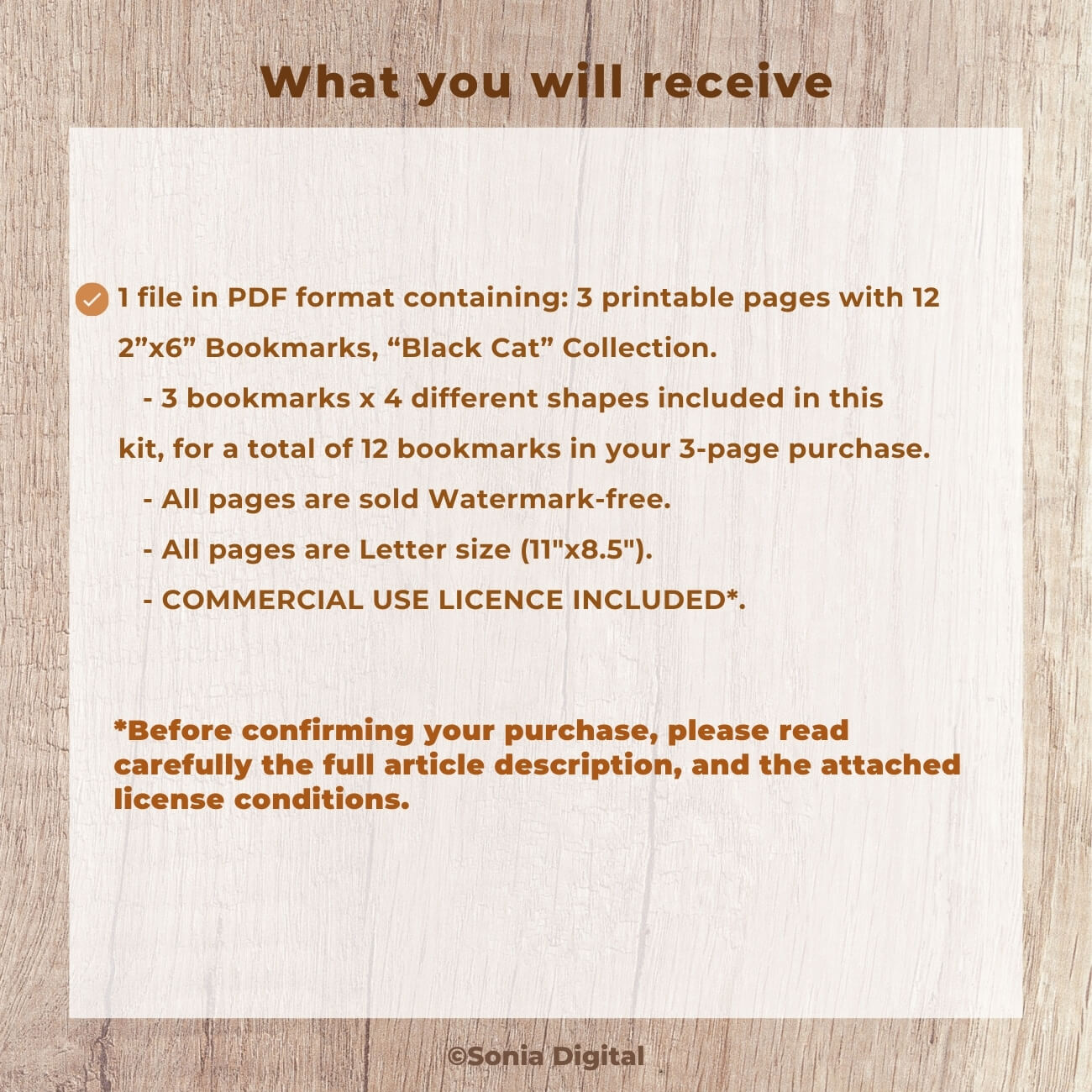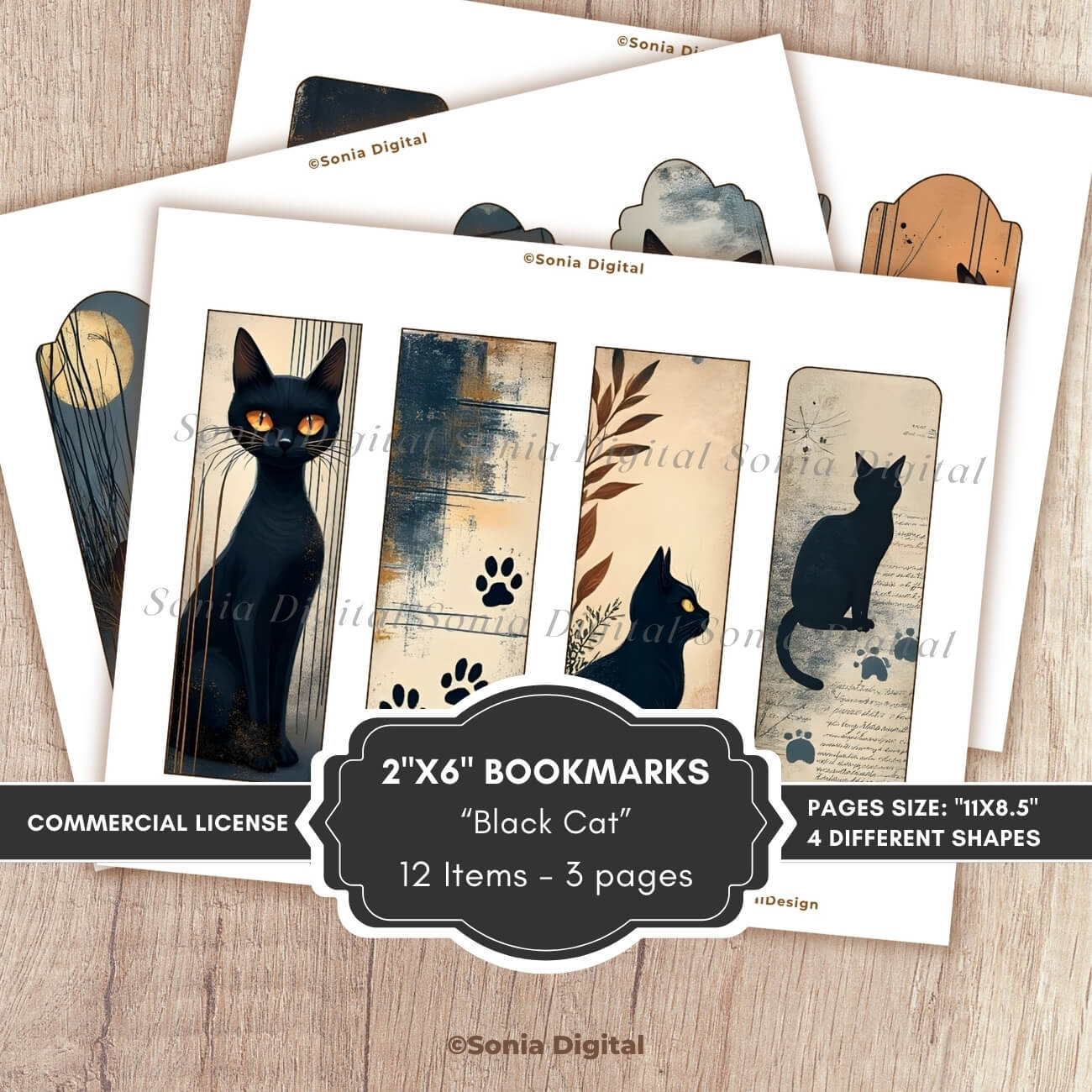 🔸3 printable pages with 12 2”x6” Bookmarks, “Black Cat” Collection. In Letter size, 11”x8.5”. All pages are sold watermark-free. 3 bookmarks x 4 different shapes included in this kit, for a total of 12 bookmarks in your 3-page purchase.