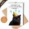 Printable Birthday Card “Comment ça il n’y a plus rien à boire?” Cat, A6 (10.5 cm x 14.8 cm).