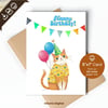 Printable Birthday Card “Happy Birthday”, 5”x7” (12.7cm x 17.8cm) when folded, featuring a cat. Available in: