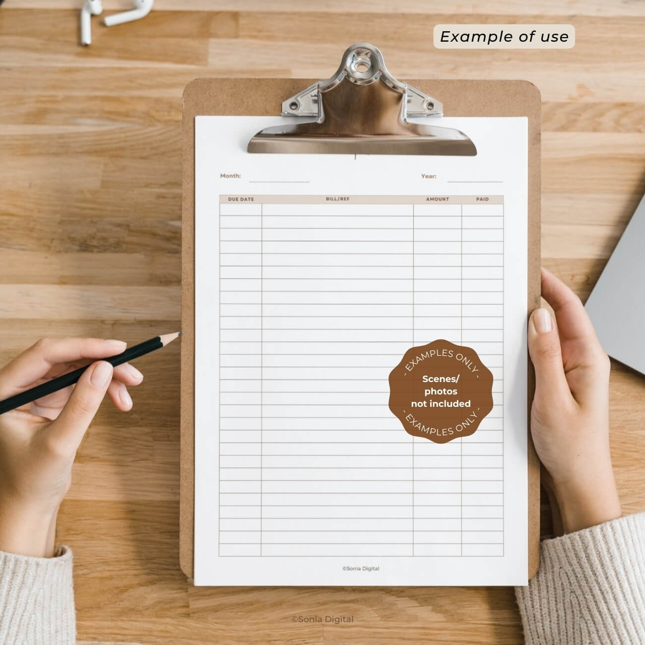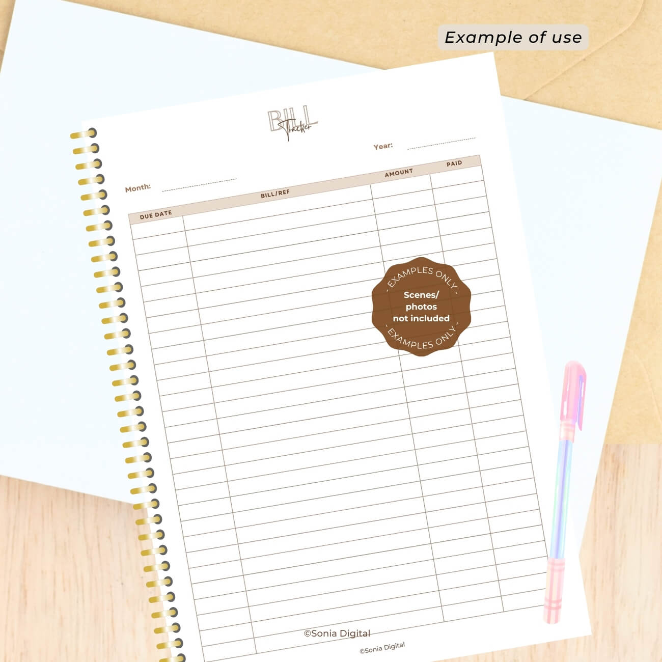 🔸1 PDF file “Bill Tracker”, A5, without crop marks