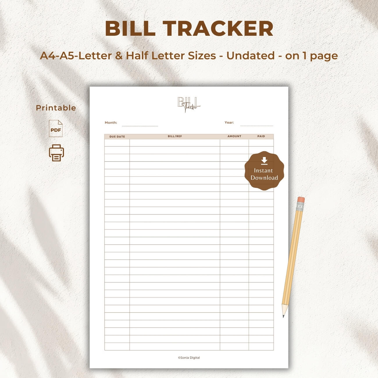 Never miss a payment again! Perfect for busy individuals, students, and small business owners, our Bill Tracker is easy to use. Download your copy today and reduce your financial stress!