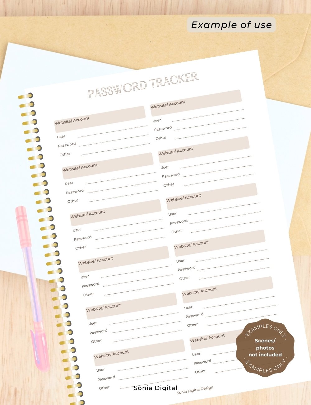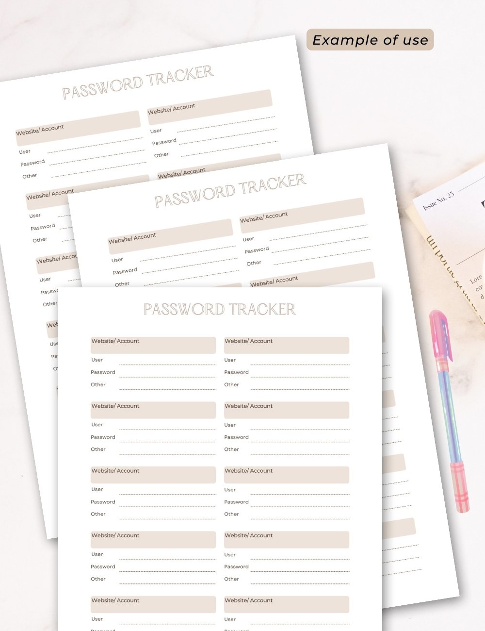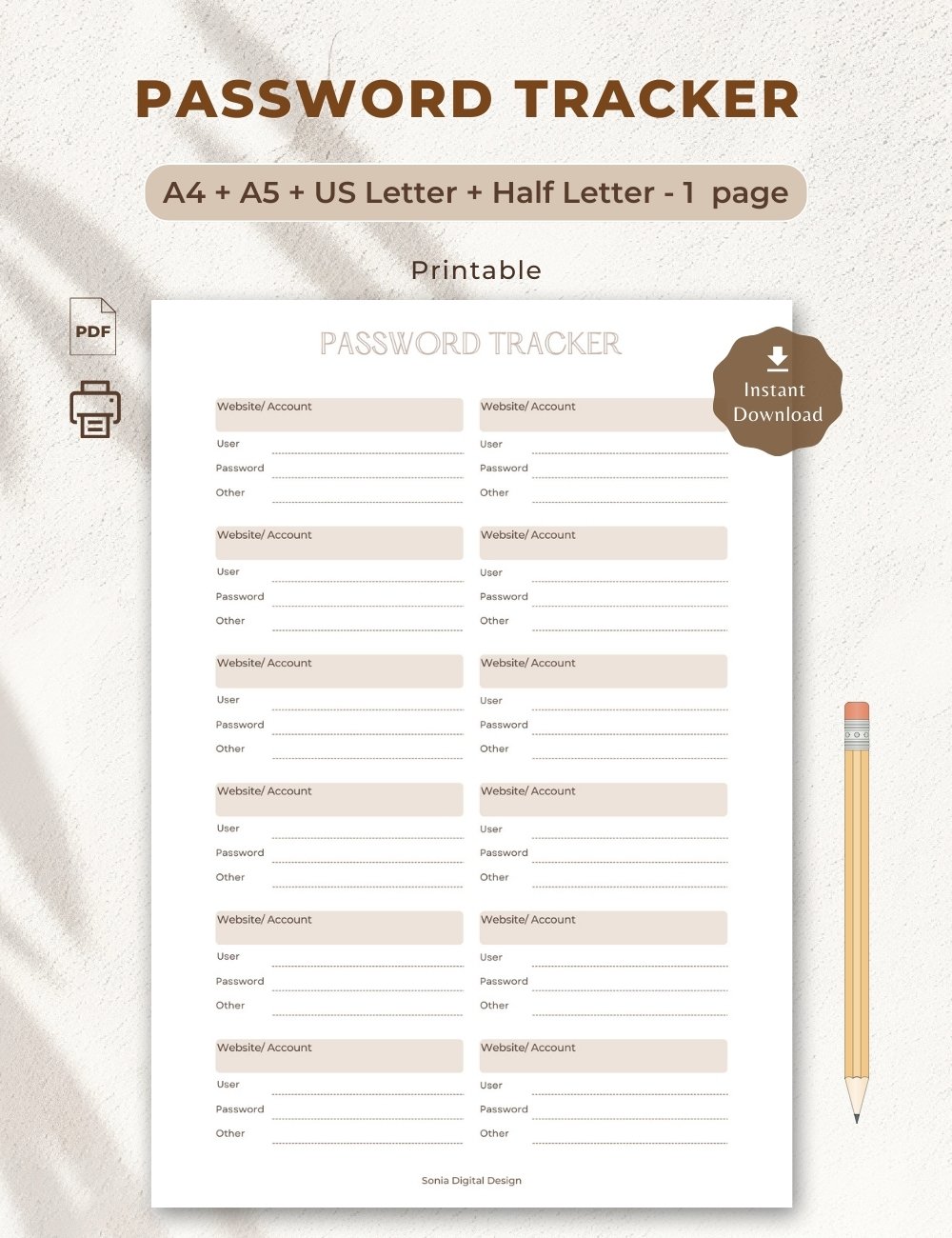 🔸1 PDF file “Password Tracker”, A4, without crop marks