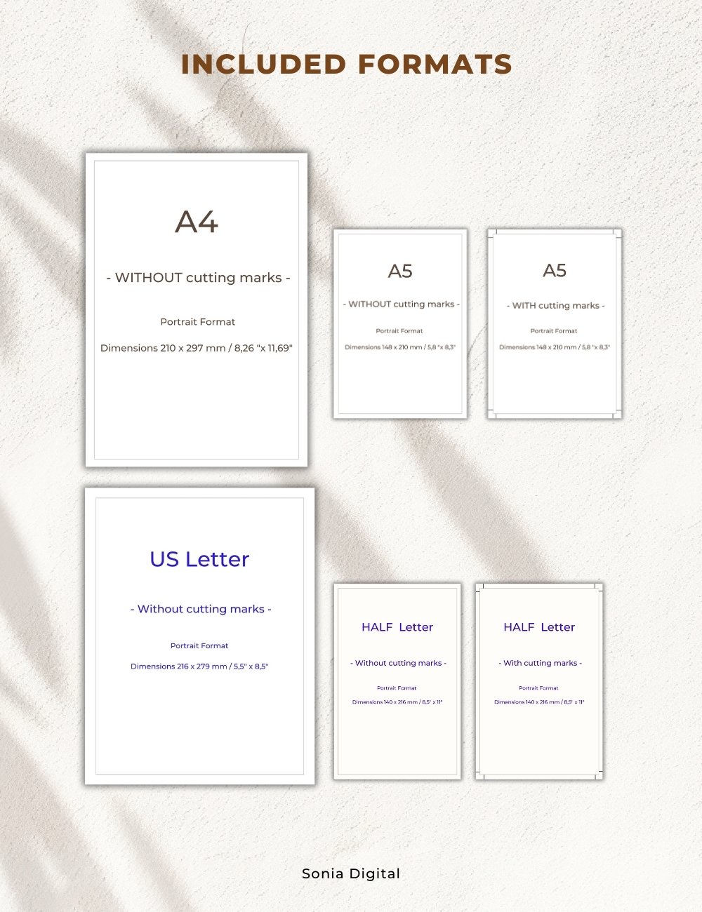 * A4, A5, Letter and Half Letter sizes included