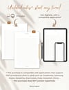 * Digital use: Compatible with note-taking and planning applications that support PDF annotation files free or paid) such as: Goodnotes, Samsung Notes, Notability, Zoomnotes, Xodo, Noteshelf, Penly, etc.