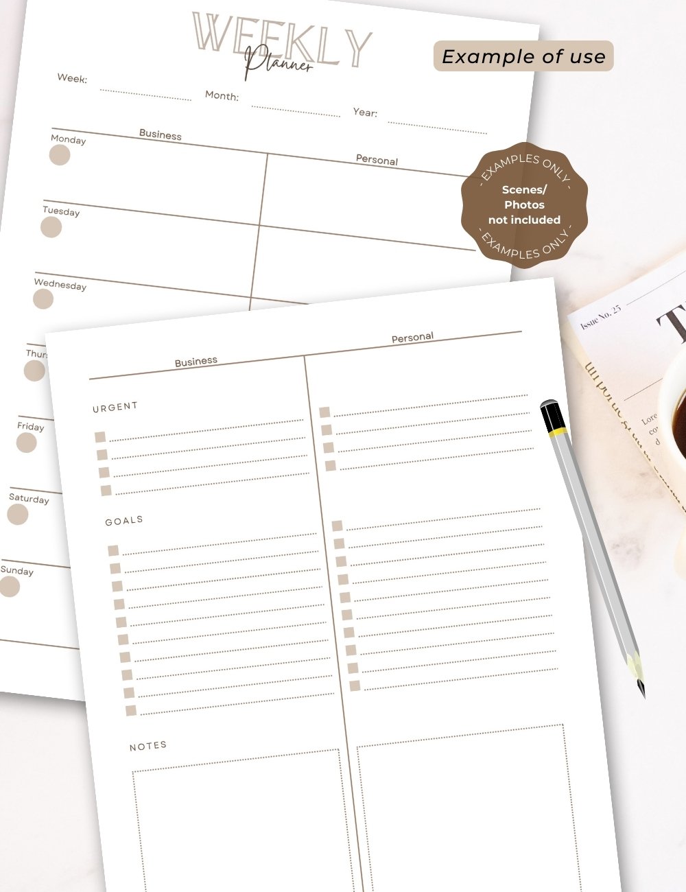 🔸1 PDF file “Weekly Planner, Business & Personal”, A4, Without crop marks