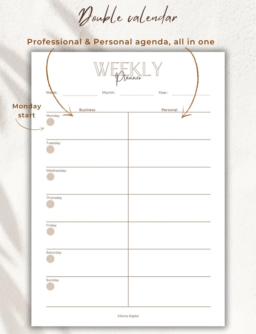 Dual Weekly Planner, Business & Personal agenda, printable (Undated)