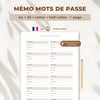 Mémo Mots de Passe, A4-A5- Letter & Half Letter