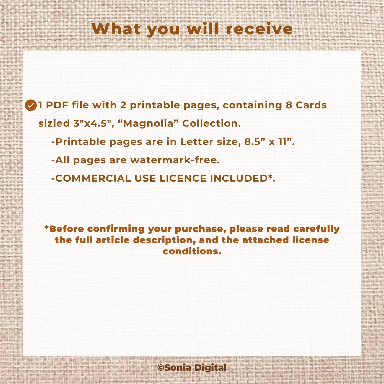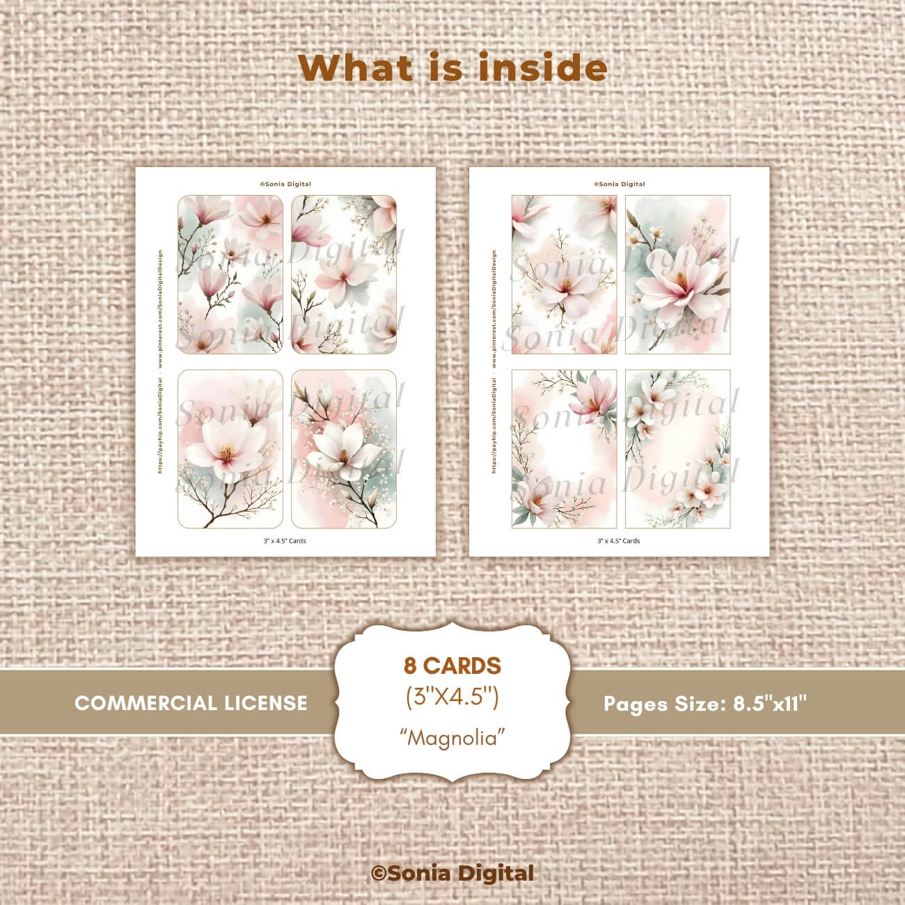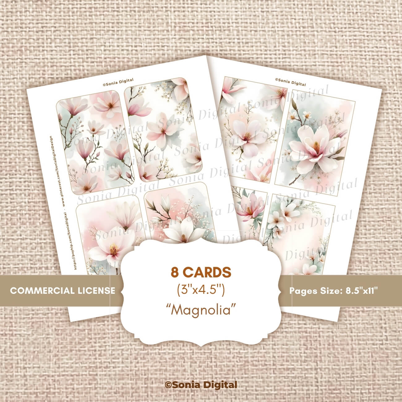 🔸2 printable pages: 8 Cards 3”x4.5”, “Magnolia” Collection, in Letter size 8.5”x11”. All pages are sold Watermark-free. Commercial use license included*.