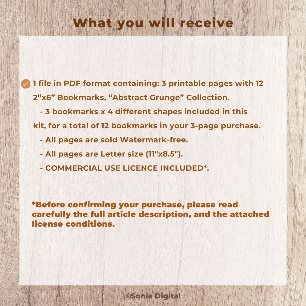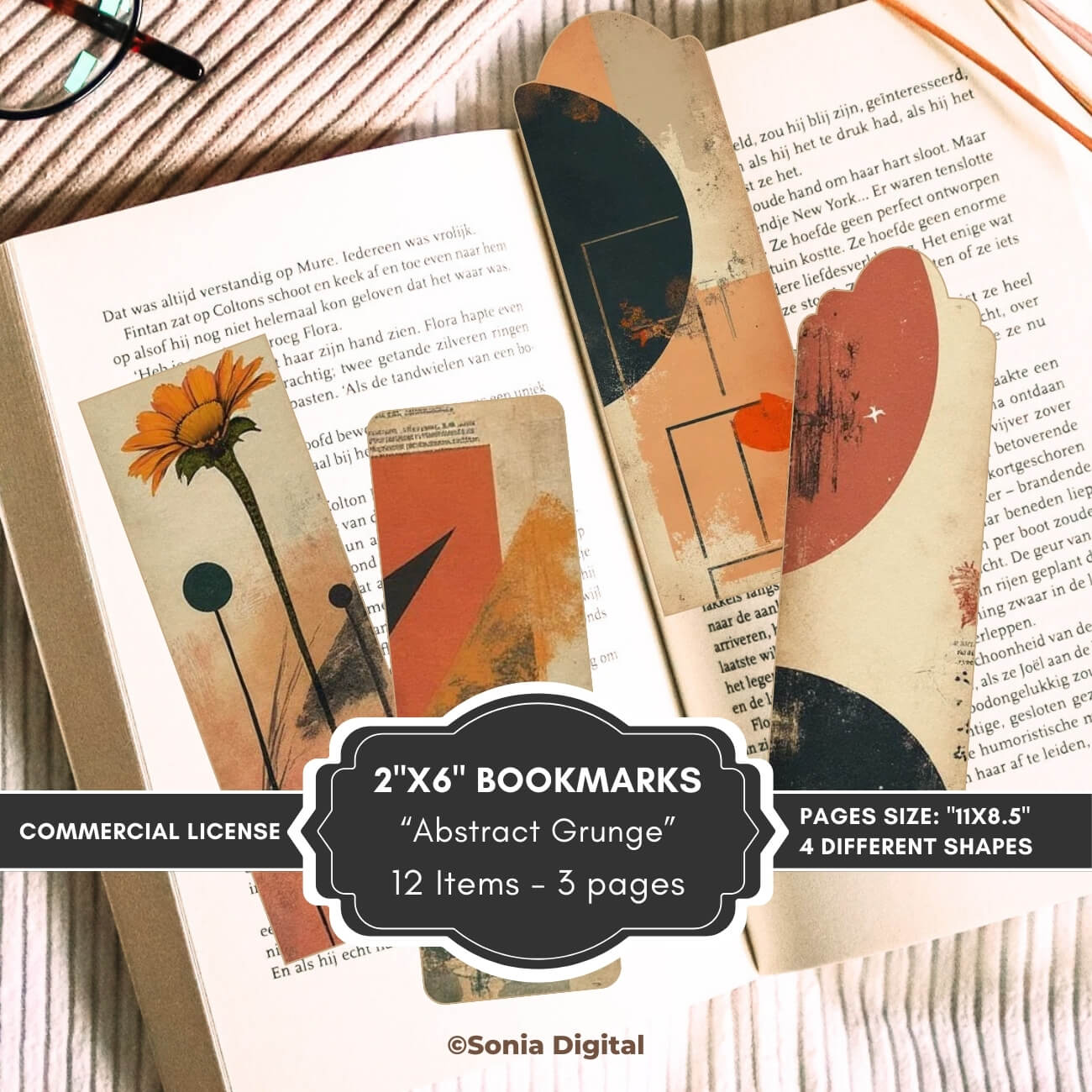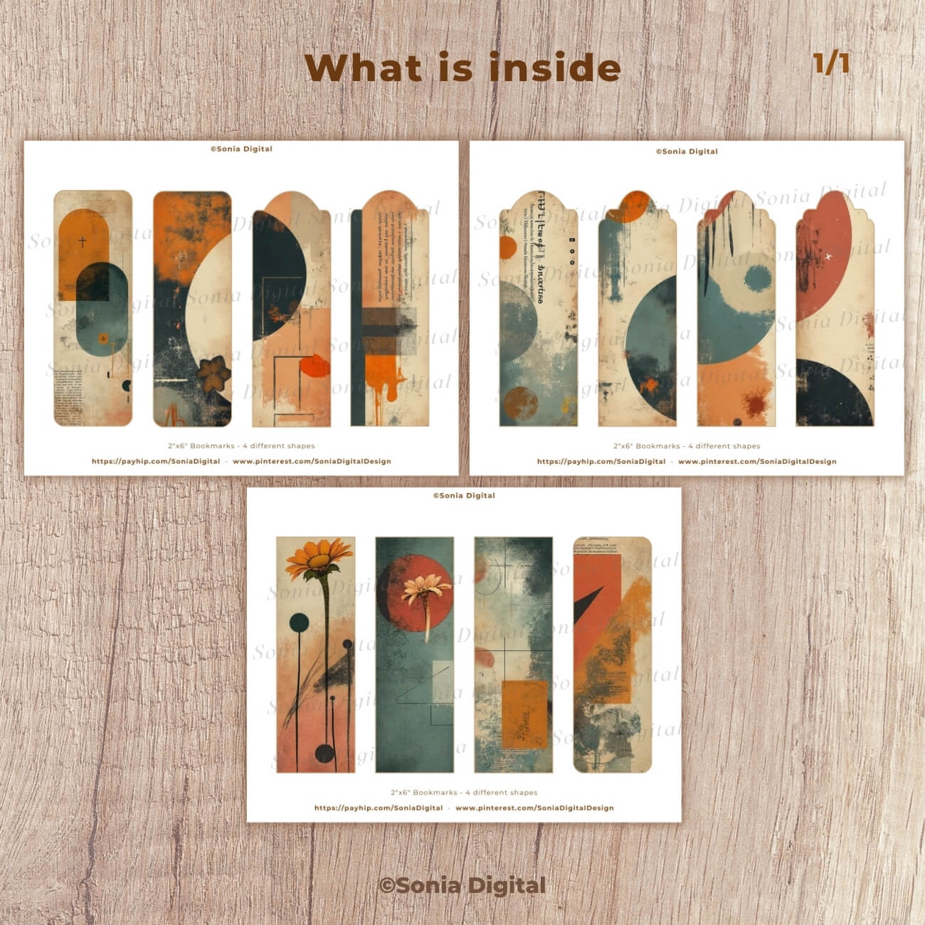 🔸3 printable pages with 12 2”x6” Bookmarks, “Abstract Grunge” Collection, Vol 1. In Letter size, 11”x8.5”. All pages are sold watermark-free. 3 bookmarks x 4 different shapes included in this kit, for a total of 12 bookmarks in your 3-page purchase.